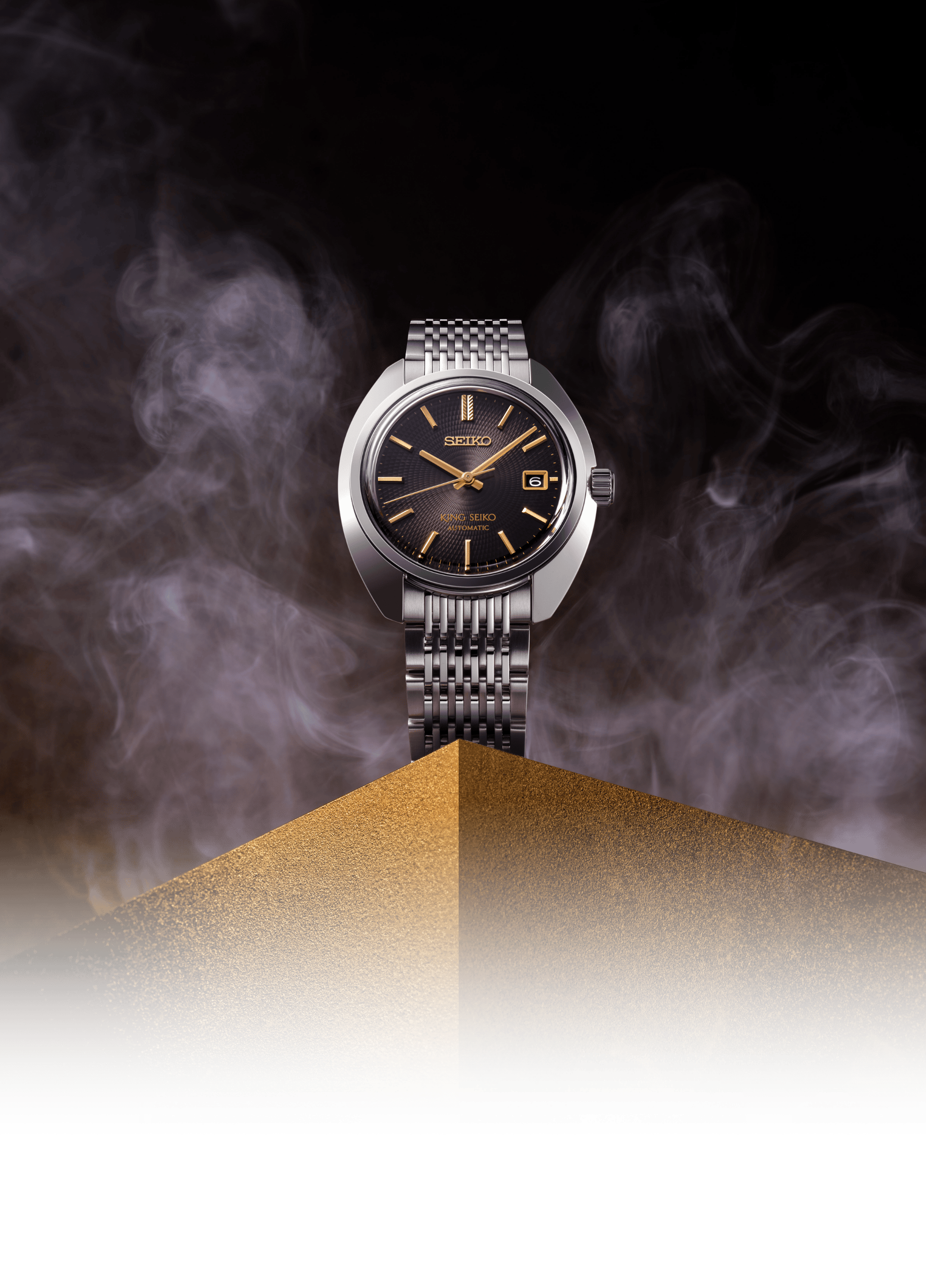 ダイヤルには、精工舎の設立前に、創業者の服部金太郎のアイデアで輸入懐中時計に施された美しい彫刻から着想を得た型打文様と、深みのあるグレーのグラデーションを組み合わせました。
