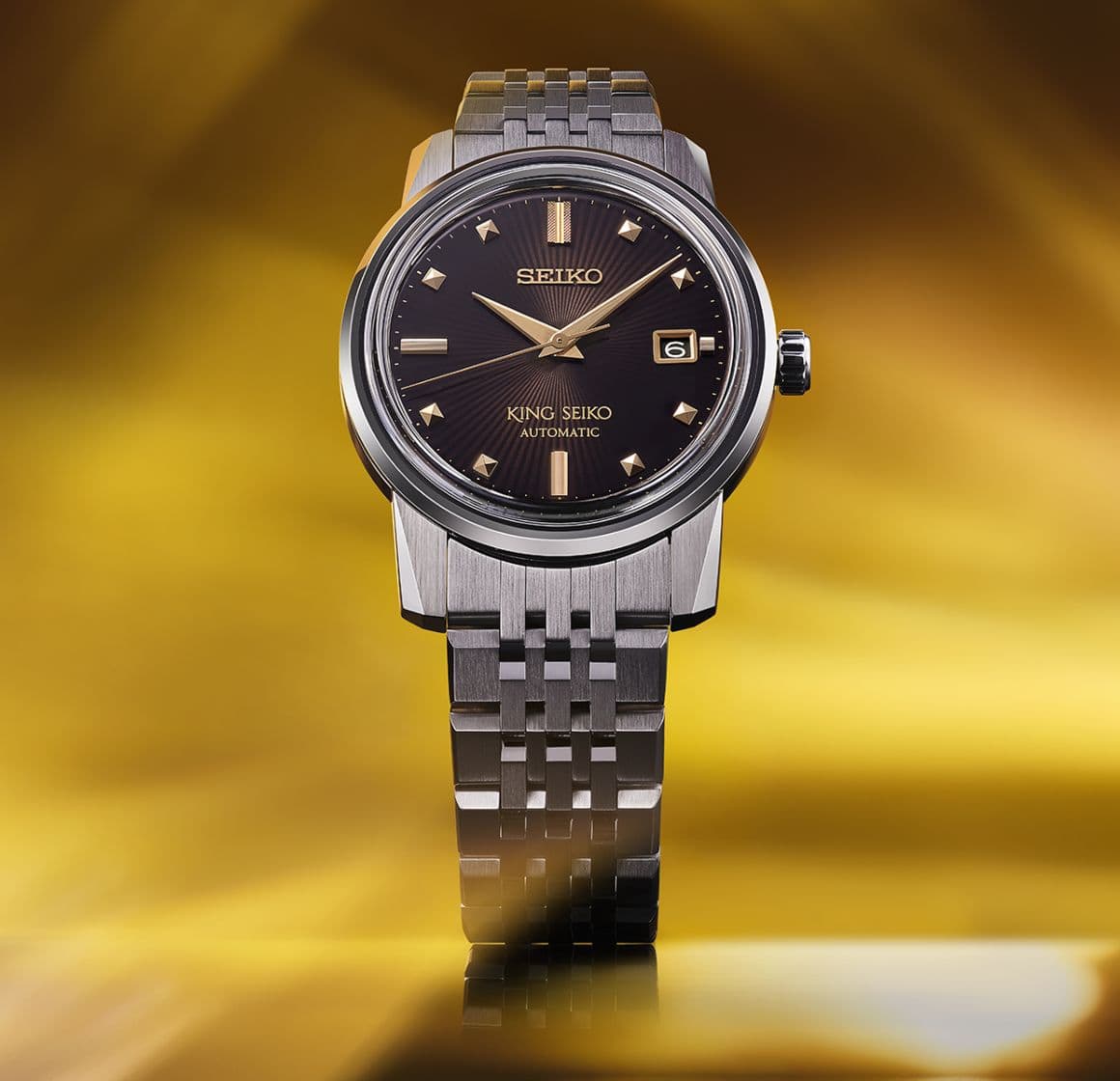 セイコー創業145周年を記念した限定モデルには、成功や豊かさなどを象徴する温かみのあるゴールドをアクセントカラーとして採用しました。
